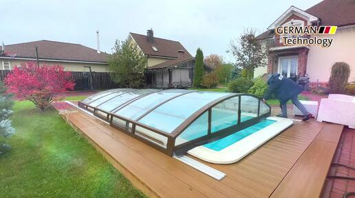 Павильон для бассейна модель CARAT 6,6х4,0х0,8м. Коричневый цвет профиля. Прозрачный поликарбонат