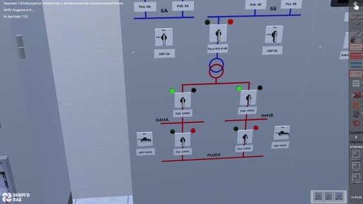 Автоматическая синхронизация генератора на 3D тренажере по синхронизации генератора ООО "Энерго Лаб"