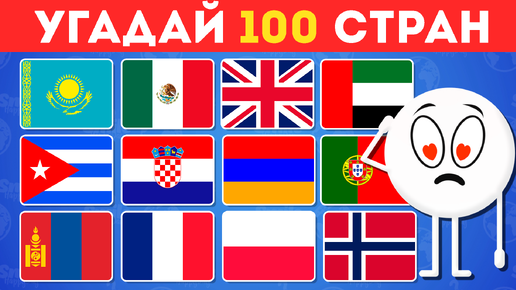 Угадай страну по флагу за 3 секунды / Угадай 100 стран / Тест по географии