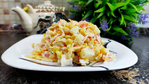 С АНАНАСОМ Вкуснее. Новый САЛАТ с крабовыми палочками. Быстрый салат рецепт.