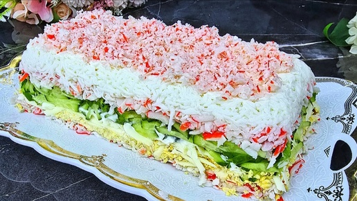 за 10 минут! Обалденные ЗАКУСКИ с крабовыми палочками!Сколько Салатов не готовил на Праздник, но этот съедается Первым.