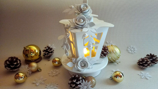 Новогодний декор своими руками. Как сделать декоративный фонарь из фоамирана. Ссылка на шаблон в описании под видео.