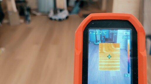 Фольгированные маты для теплого пола. Съемка с тепловизором