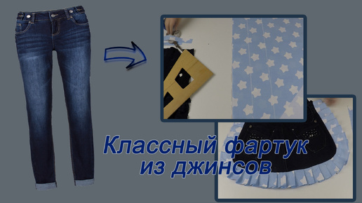 Подсмотрела идею красивого фартука из старых джинсов за 20 минут.