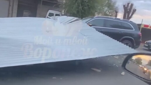 Мерседес прибило забором из-за ветра в Воронеже - опубликовано видео