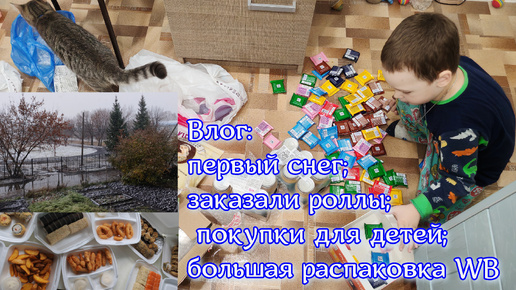 Влог: первый снег, заказали роллы и вкусняшки, покупки для детей, большая распаковка Вайлдберриз, будни с детьми