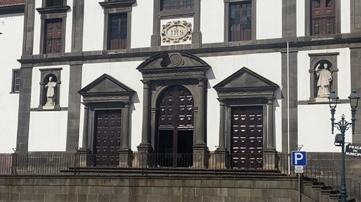 Остров Фуншал. Ратушная Площадь с волнами и Церковь Святого Иоанна Богослова.