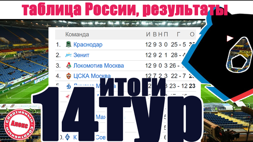 Чемпионат России по футболу. РПЛ. 14 тур. Результаты, таблица, расписание + таблица ФНЛ