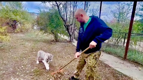 У меня замечательные помощники БЕЛЫЕ ТИГРЯТА, вместе мы быстро уберем вольер)
