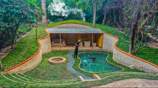 Удивительный Дом Хоббита с Подземной Комнатой, Глиной и Травяной Крышей!