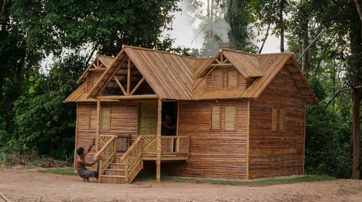 Постройка Бамбукового Дома с Частной Подземной Секретной Гостиной!