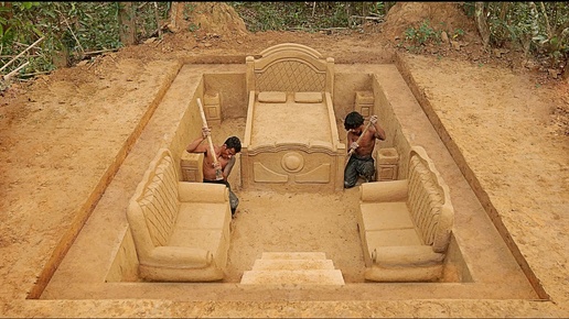 Строим Самый Креативный Подземный Дом с Уютной Гостиной и Декором!