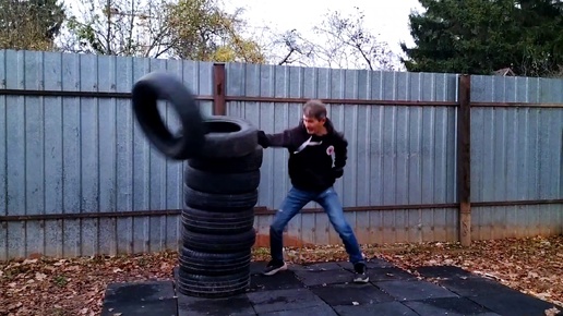 Далее: Тренировка - выбить ударами две, три шины подряд из пирамиды.