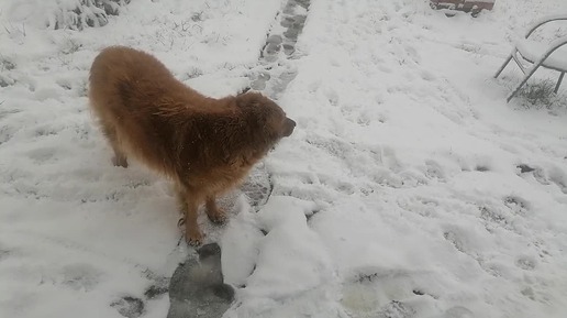 Снег, зима. Фреду нравится, а Герде нет.