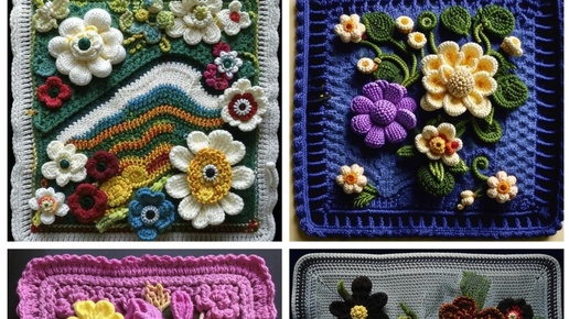 ЦВЕТЫ в квадратных мотивах от нейросети. ПОДБОРКА №17. ВЯЗАНИЕ.