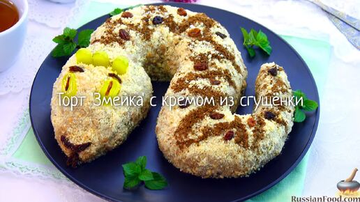 Почти "Муравейник", но новогодний. Торт "Змейка" с кремом из сгущёнки