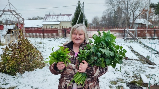 Добыли ПОСЛЕДНЮЮ ЗЕЛЕНЬ из-под снега на салат в ноябре. В теплице оранжерея из горчицы