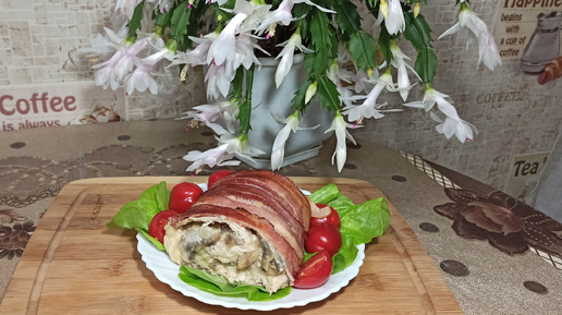 Вкусный рулет из куриной грудки со сливочными шампиньонами завёрнутый в бекон ✦ Рецепт для праздничного стола и уютных вечеров