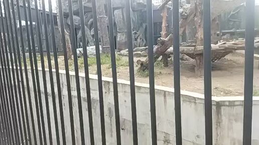 Девятилетняя гималайская Медведица по кличке Челси выглядывает из своей берлоге и что-то кушает в Новосибирском зоопарке