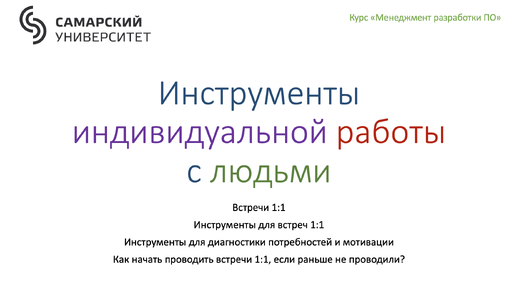 Инструменты индивидуальной работы с людьми: мотивация, встречи 1:1