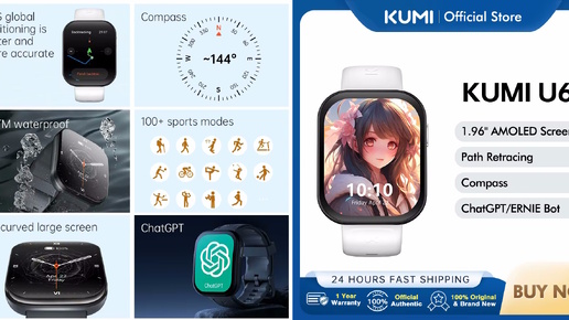 KUMI U6 - часы с GPS и внутренней памятью (музыка, диктофон), подключением гарн, ChatGPT и аналогами