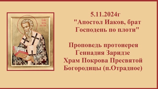 5.11.2024г "Апостол Иаков, брат Господень по плоти" Проповедь протоиерея Геннадия Заридзе Храм Покрова Пресвятой Богородицы (п.Отрадное)