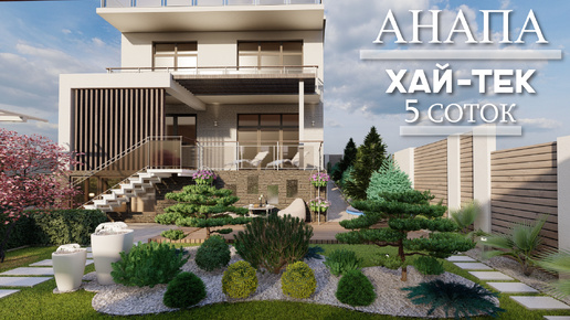Ландшафтный дизайн участка 5 соток в Анапе. Планировка в стиле Хай-тек