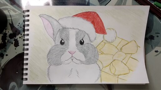 Кролик, которому надоела осень и он ждет Новый год / Рисунок цветными карандашами, пошаговые фото