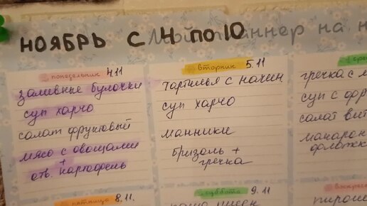 📝Меню на неделю📌вторник 5.11.24