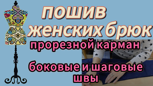 Пошив женских брюк. Прорезной карман. Боковые и шаговые швы Боковые и шаговые швы