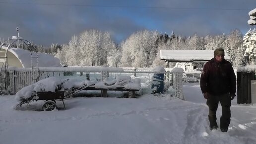 Свиная нога в печи, тыквенный сок и первый снег. Зима пришла. Деревенский предсказатель 😅