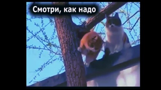 Как правильно спускаться с дерева. Совет от японского кота