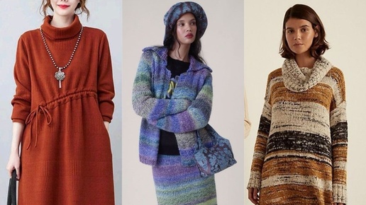 Самые модные трендовые вязаные уютные платья на сезон Зима-Весна