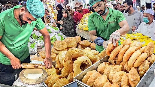 Уличная еда на Рамадан — приготовление кхаджлы, хрустящий хлеб на Рамадан, уличная еда Пакистана