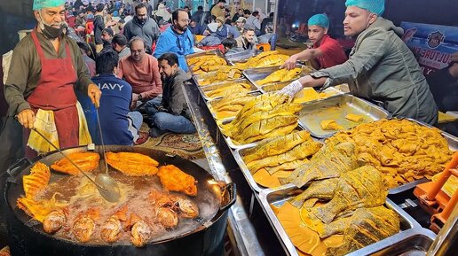 Жареная и запечённая рыба на крупнейшей улице морепродуктов — Лахорская острая рыба, уличная еда