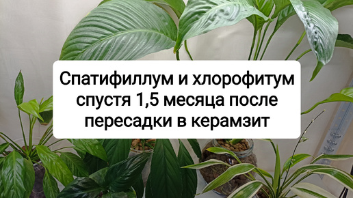 Спатифиллум и хлорофитум спустя 1,5 месяца после пересадки в керамзит