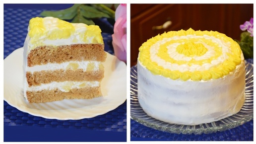 Медовый Торт "Нарцисс" с Ананасами ✧ Медовый бисквит со сливочным кремом
