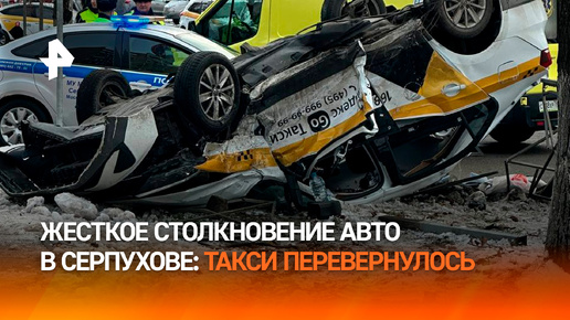 Такси перевернулось после жесткого столкновения с легковушкой в Серпухове