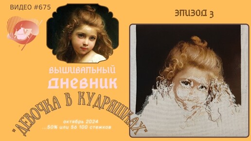 #675 ВЫШИВАЛЬНЫЙ ДНЕВНИК | «Девочка в кудряшках» от Шико | ЭПИЗОД 3 | процесс вышивки 50%