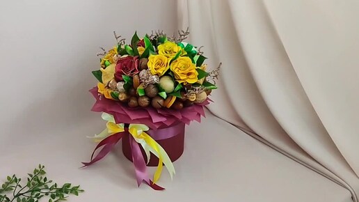 Букет для мамы с орехами , сухофруктами и рощами из яблок