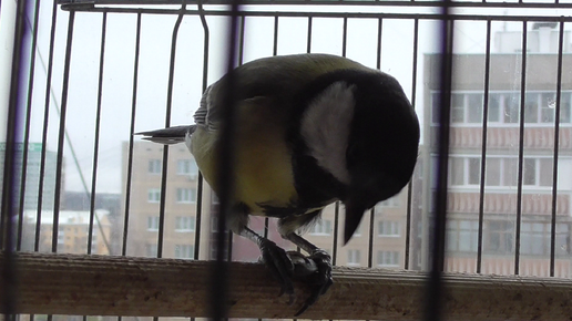 Большая птица синица в клетке