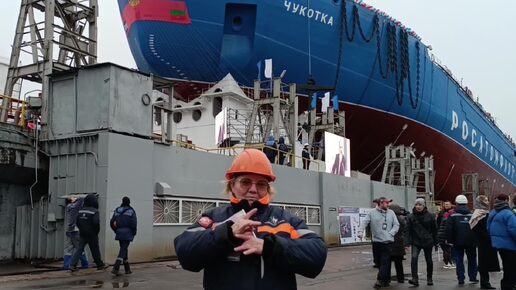 ( РЖЯ)Санкт-Петербург .Балтийский завод спустил на воду мощный атомный ледокол " Чукотка " в мире.