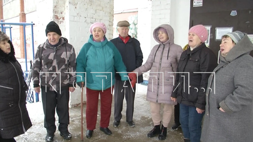 Хор бабушек и дедушек распевается на улице, так Дом культуры закрыли из-за отсутствия отопления