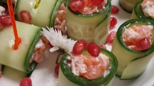 Овощные роллы с творожным сыром и рыбкой, закуска на праздничный стол