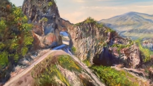 Каменная арка, Галанчожский район ЧР маслом на холсте 80 на 120 см. Зилавди Яшуркаев.