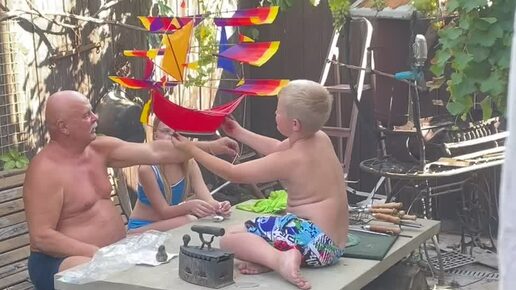 IMG_3604 Ростов на Дону.Привез внукам удививший меня своей оригинальностью воздушный змей работы индонезийских кустарей. Сейчас идёт сборка