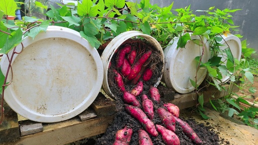 Выращивание сладкого картофеля с множеством клубней в пластиковых контейнерах без ухода!