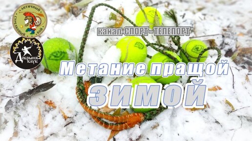 Метание из пращи зимой. Спортивное метание теннисного мяча. Концентрация на точке прицеливания