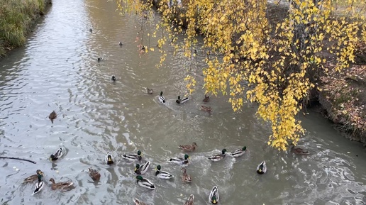 Кормление уточек на речке. Уткам тоже бывает холодно