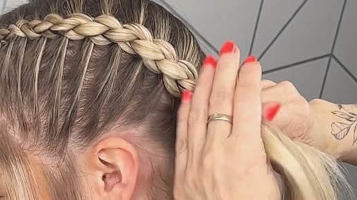Плетеная прическа с низким хвостом и лентами